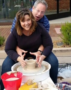 I am a self-taught potter and started selling my pottery in the early ’90s. I was lucky enough to have sales reps at the L.A. Mart interested in my work and they sold my ceramics at high-end retail stores throughout the United States. After a couple of years of non-stop working, I burned out and it wasn’t until 2015 that I picked up clay for a second time. I took classes at a local ceramic studio in the town where I live and fell in love with clay again. I love the idea that I can take a blob of mud/clay and create something out of it with my own hands. My items are mostly functional and are either hand built (taking slabs or blobs of clay and making something by hand), or wheel thrown (yes, just like in Ghost), and all are glazed by me. Everything is created in my home studio that my clever husband built for me (us…remember Ghost) and I love being a potter.