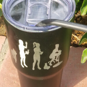 Evolution of a female potter! From ape to fire, to modern day to potter! Custom designed and looks great on these 30 Oz tumblers that will keep your beverages cold 24+ hours and hot/warm for 8 hours. Perfect gift for the potter in your life. Available in black. More color options coming soon.