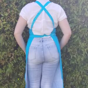 All of our aprons are very well made with extra details and care. Our aprons are extremely functional for many uses. All of our aprons feature a split-leg (necessary for movement and coverage), towel loop (no more wiping hands on clothes), criss-cross back with button adjustments (no neck pulling & adjustable), 2 functional pockets (great for tools, brushes, phones), & XL-long ties for front or back closure. Made from 100% durable duck cotton fabric. Machine washable and dryer safe. One Size/Full Cut. Made in the U.S.A.